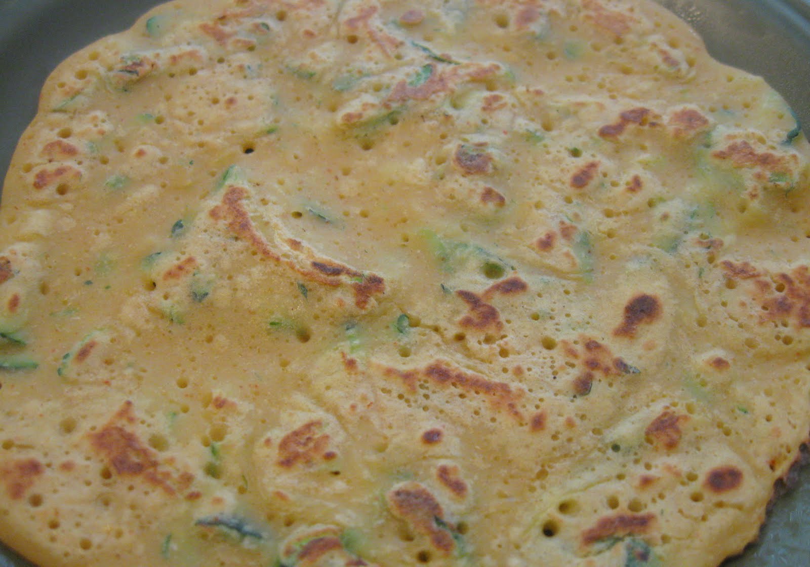• Mix the dry ingredients together in a bowl, besan (gram flour), rice flour, salt, and cumin seeds. Add the shredded zucchini, cilantro, green chillies to this & mix well.